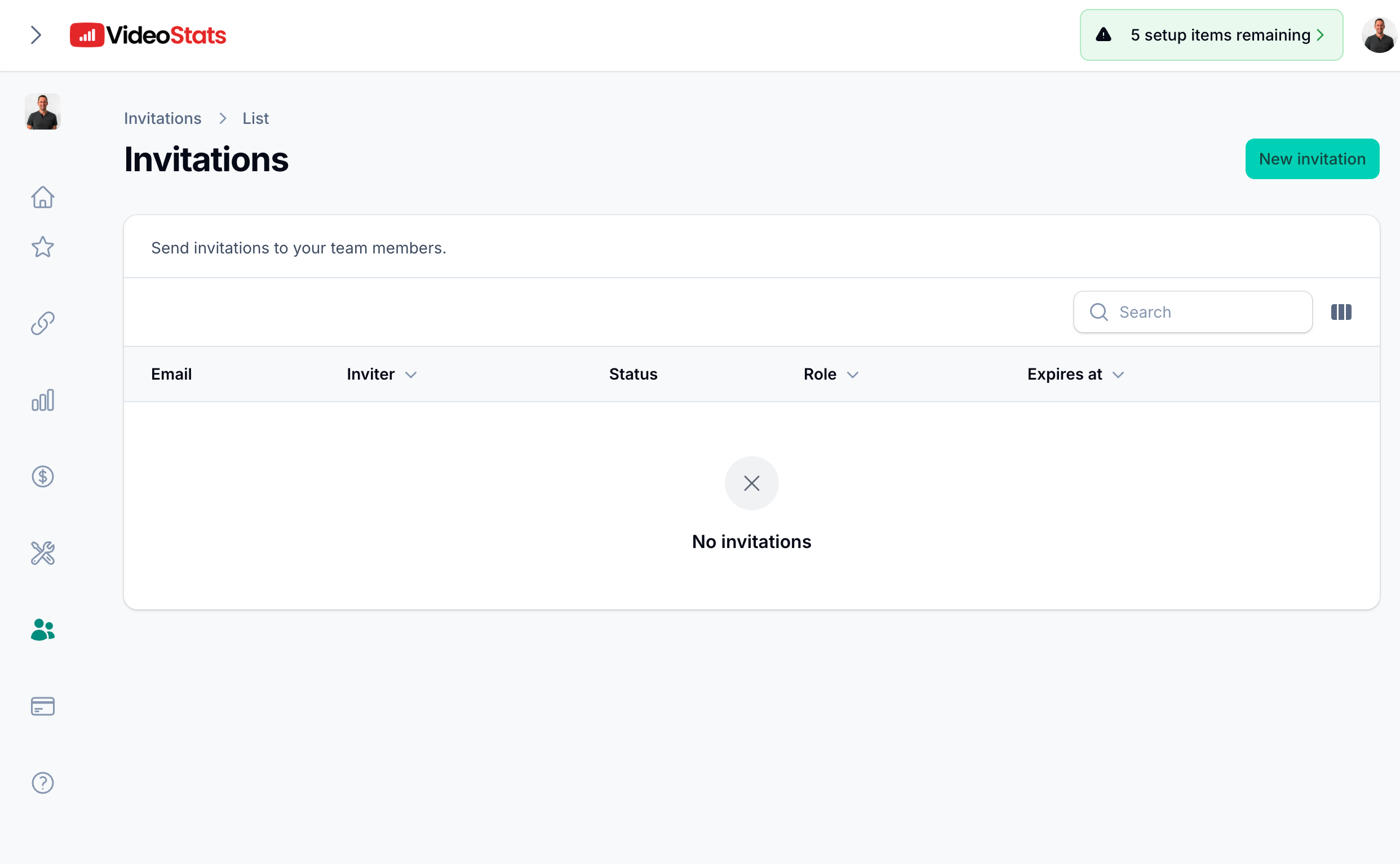 Collaborate with your team by inviting colleagues to your VideoStats workspace. Each team member can be assigned a specific role that determines their level of access and permissions.